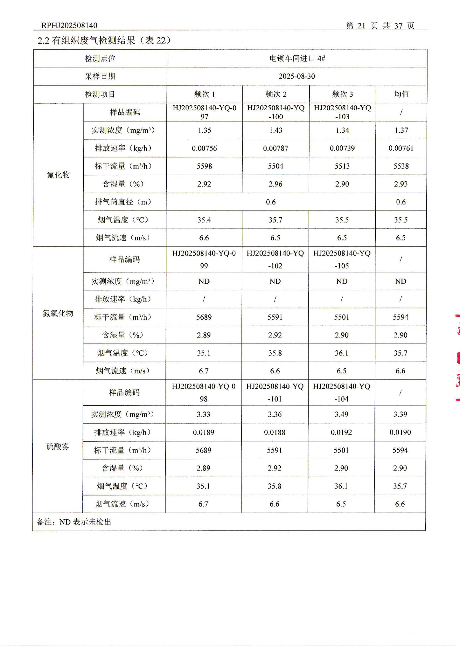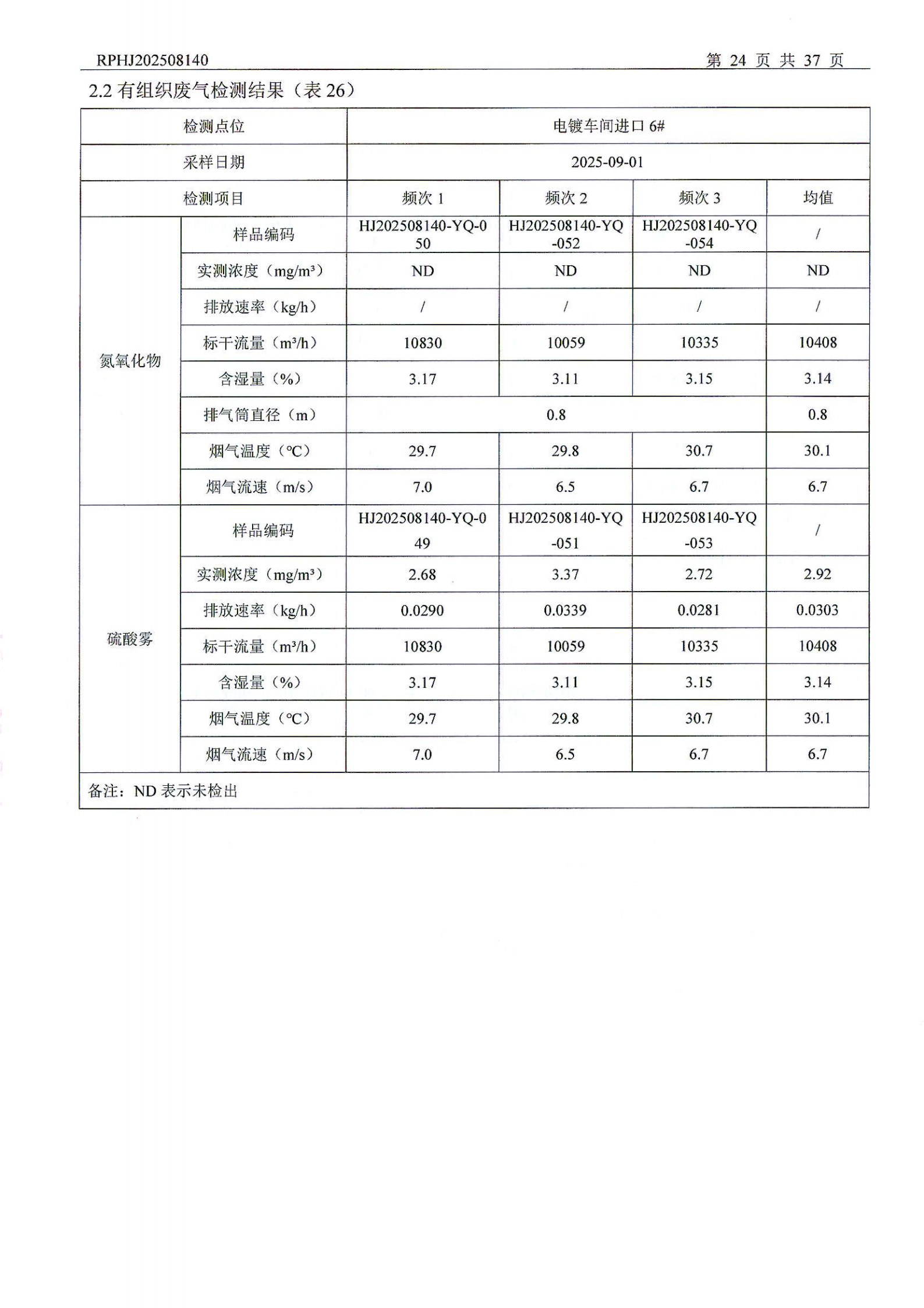 山东泰开电器机构有限公司废气检测
